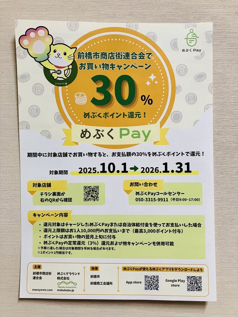 現金・PayPay・めぶくPay・クレジットカードでのお支払いが可能です。