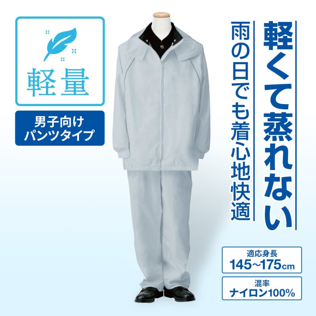 - 軽くて蒸れない!雨の日でも着心地快適!