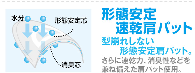 お子様の体型の変化に合わせ、「より細いお子様には、まだ大きい…」のお声に応え、パターンメイクし、よりストレッチ性・軽量感を追求しています。
