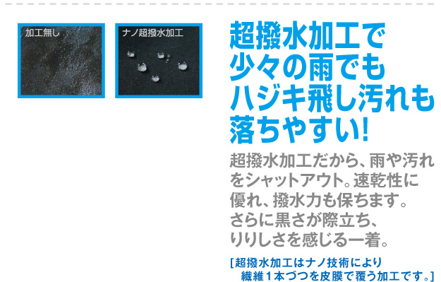 汗が気になる襟裏の生地にはカニの甲羅から抽出した天然抗菌素材のキトサンを生地に練り込むことで抗菌効果をつけています。