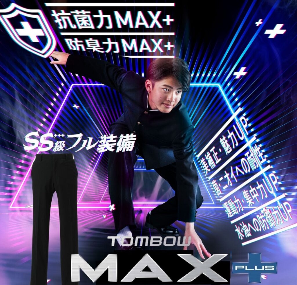 MAX+はトンボのフラッグシップモデル。最も深い黒さと抗菌機能に優れています。清潔感と機能性が融合したトンボ史上最も優れた学ランです。